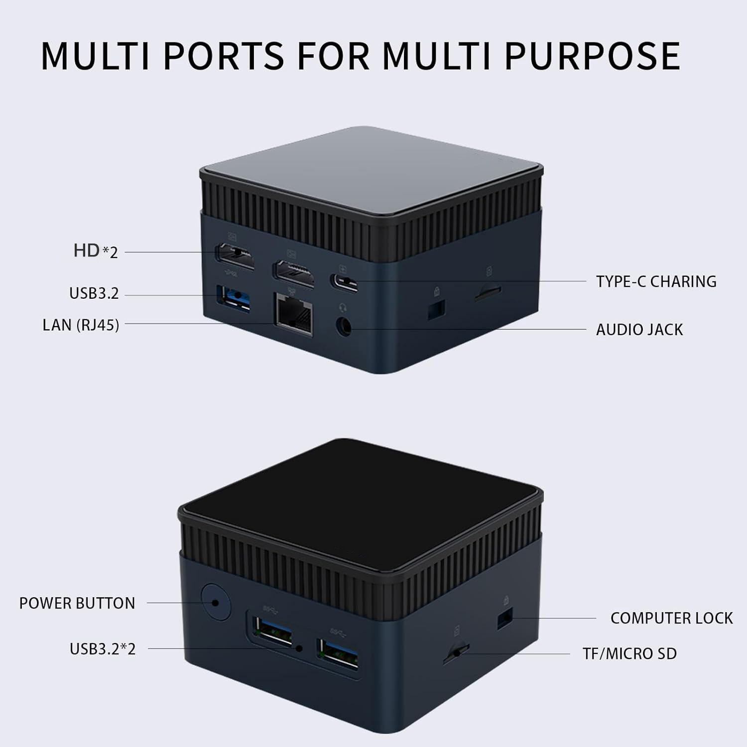 コンパクトなデザインのこの小型PCは、わずか2.83*2.83*1.77インチで、ポケットやバックパックに入れて持ち運ぶことができ、デスクスペースの節約に役立ちます。