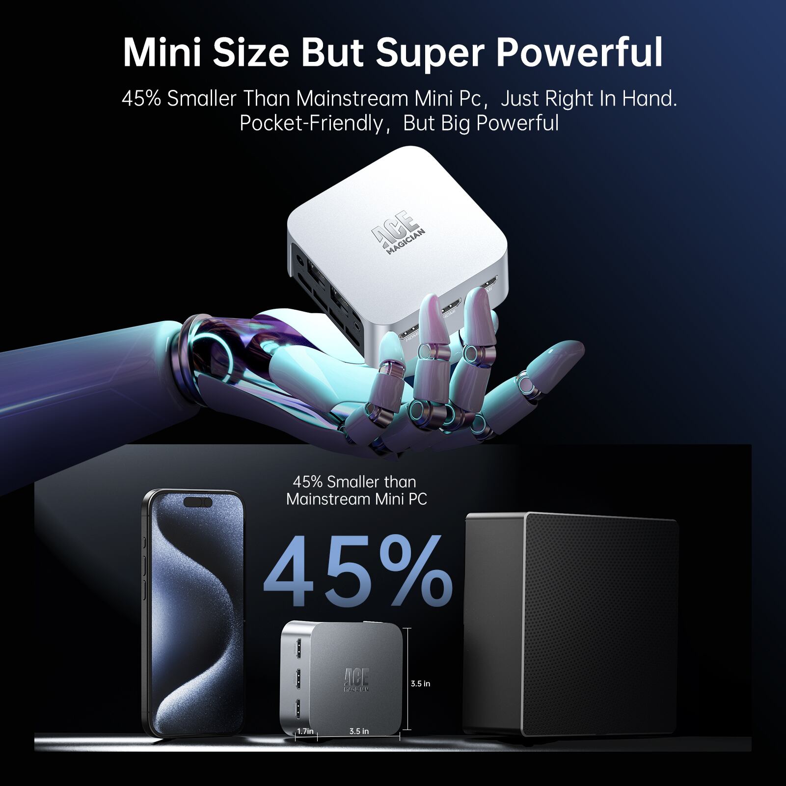 他の一般的なミニコンピューターと比較して、t8plusの小さくて洗練されたボディは、そのサイズの50%未満であり、デスクトップをより整理整頓します。