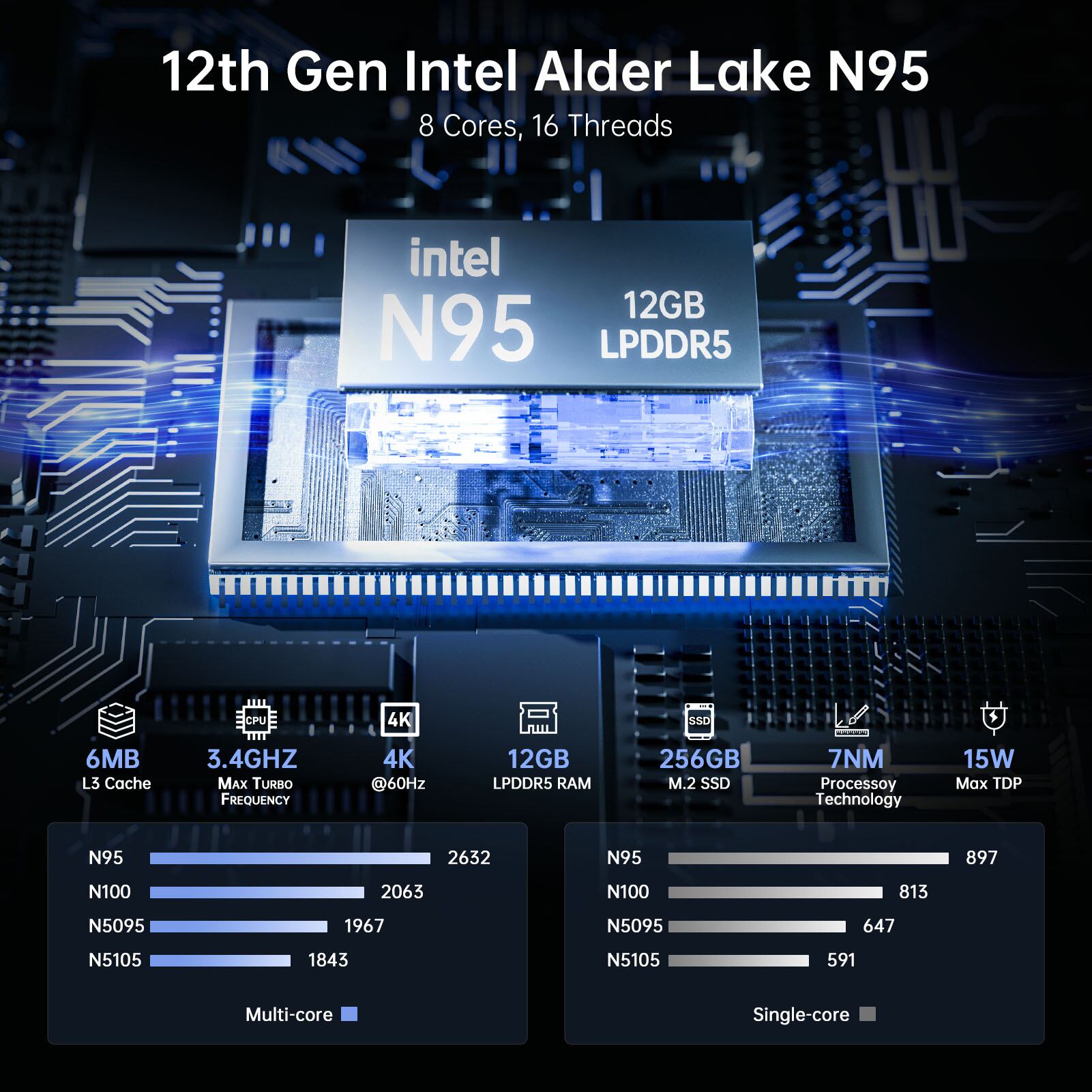 Intelの第11世代プロセッサn5095、n5105、およびn5100と比較して、パフォーマンスは35%以上向上しており、Windows11システムとの互換性が高くなっています。