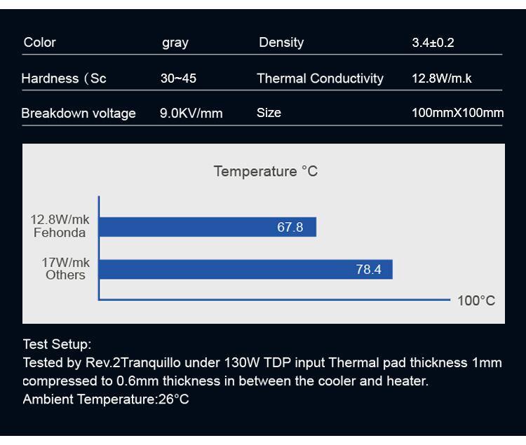 FehondaサーマルパッドにはUnダーゴンmハイテクとバイクオフの専門家による綿棒の比較テスト、詳細なビデオレビューで紹介されているとおり:https://www.youtube.com/watch?v=XxqXs_nIu8A&t=1328s20サーマルパッドのテストでは2番目にランク付けされましたが、非導電性サーマルパッドでは1番目にランク付けされました。
