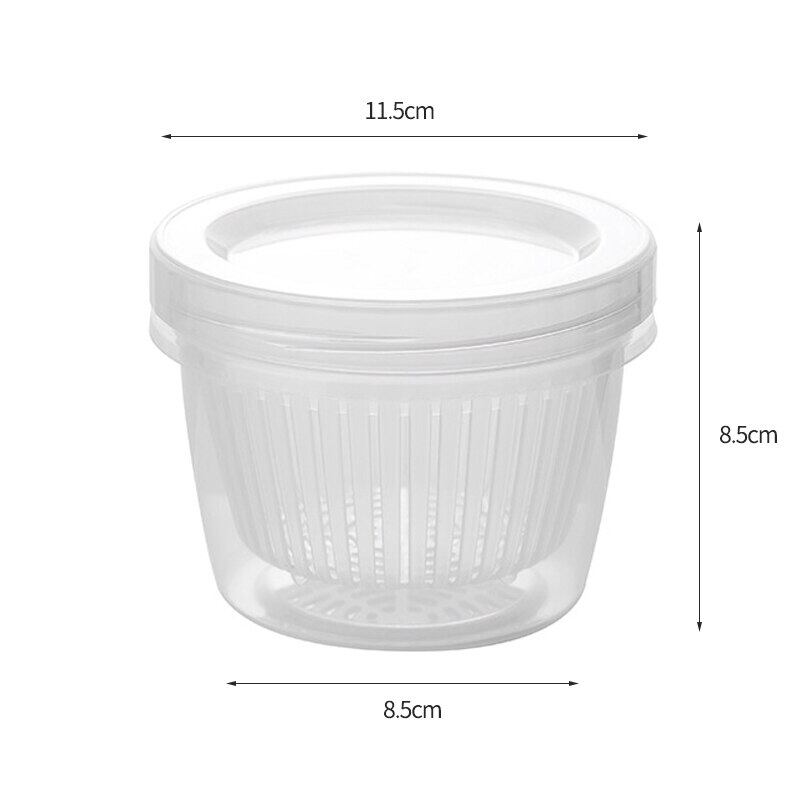 家庭用生姜にんにく玉ねぎ収納ボックス冷蔵庫用,ポータブル丸型透明排水2層鮮度ボックス