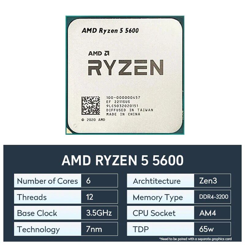 Amd-デスクトッププロセッサ,冷却なしのデスクトッププロセッサ,cpu,5, 5600コア,12スレッド,3.5ghz,ddr4,3200, 65w
