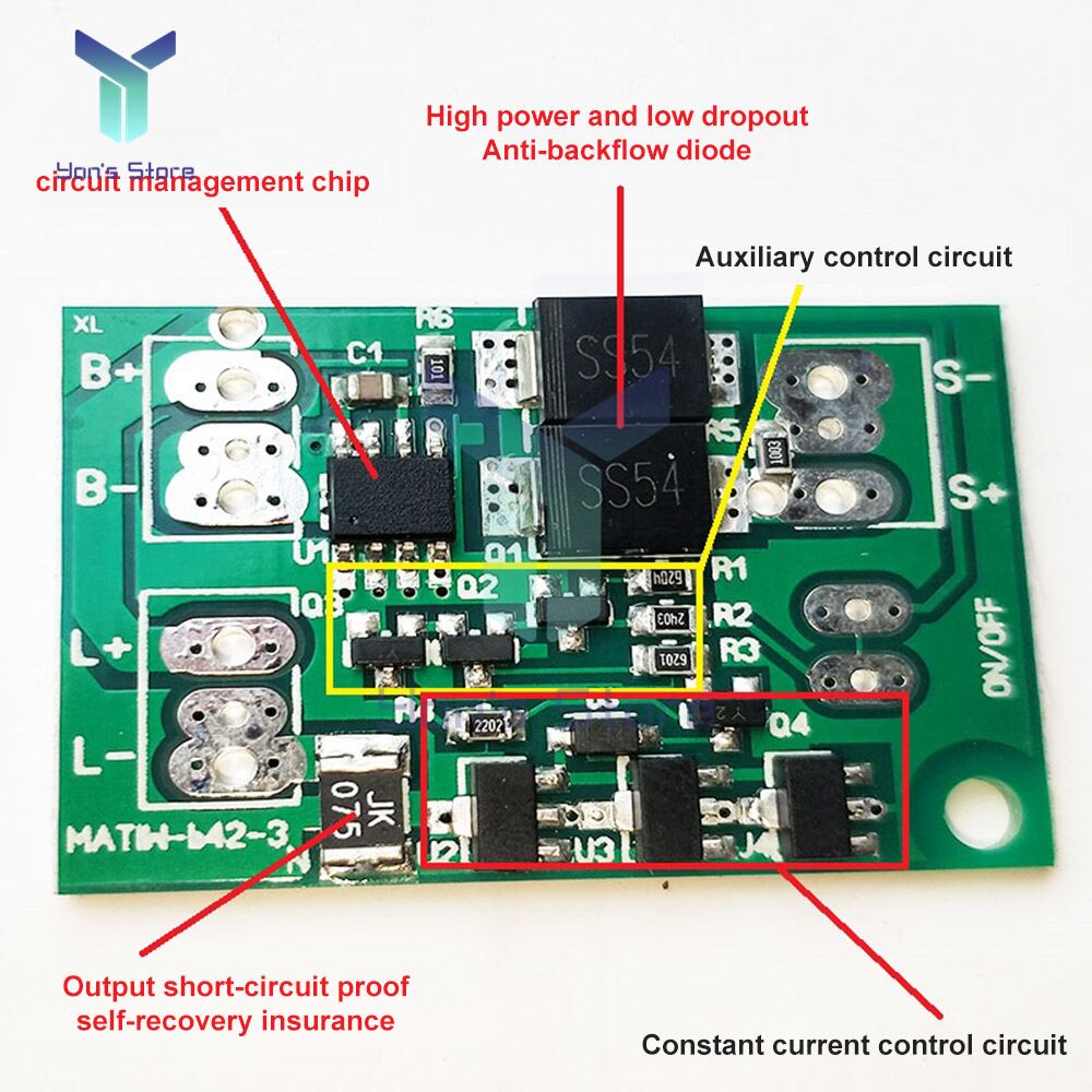 太陽光発電ソーラー充電コントローラーは、高品質の素材を使用し、安定した性能が保証されています。コンパクトなデザインで、繊細さも兼ね備えています。このコントローラーは3.7Vリチウム電池と6Vソーラーパネルに最適で、充電から放電まで自動的に管理します。安全性にも配慮し、逆流、過充電、過放電などのリスクからしっかりと保護します。正しく取り付けることで、効率的なエネルギー供給が可能となります。お手持ちのソーラーパネルの特性に合わせて適切な使い方を確認し、安心してご利用ください。機能:1.高品質の素材を使用し、品質が保証されます2.繊細でコンパクトな外観3.このコントローラーは、3.7vリチウム電池と6vソーラーパネルにのみ使用できます4.日中は充電し、暗いときは自動的にライトをオンにし、明るいときは自動的にライトをオフにします5.逆流防止、定電流LEDドライブ出力、短絡、過充電および過放電保護パラメーター:オープン回路電圧5-7vのソーラーパネルのみ使用3.7vライトボード電源サイズが使用可能3vランプボードの動作電流はコントローラーの出力電流より大きくなければなりません。