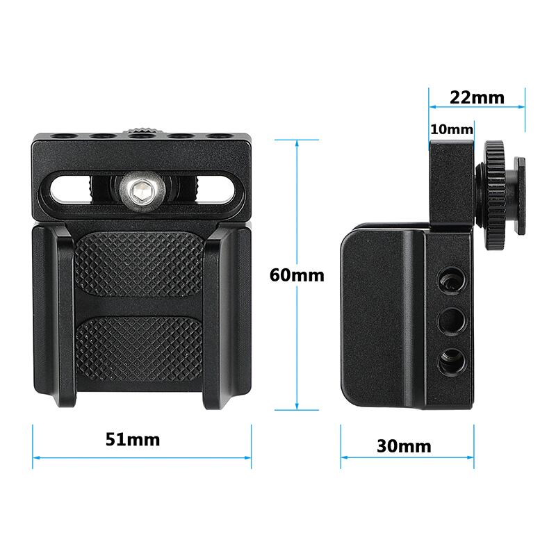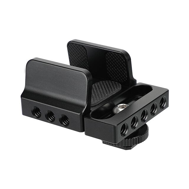 ��•1/4インチの取り付けポイント/溝が付属しており、カメラのすぐ横にカメラケージに自由に取り付けることができます。
