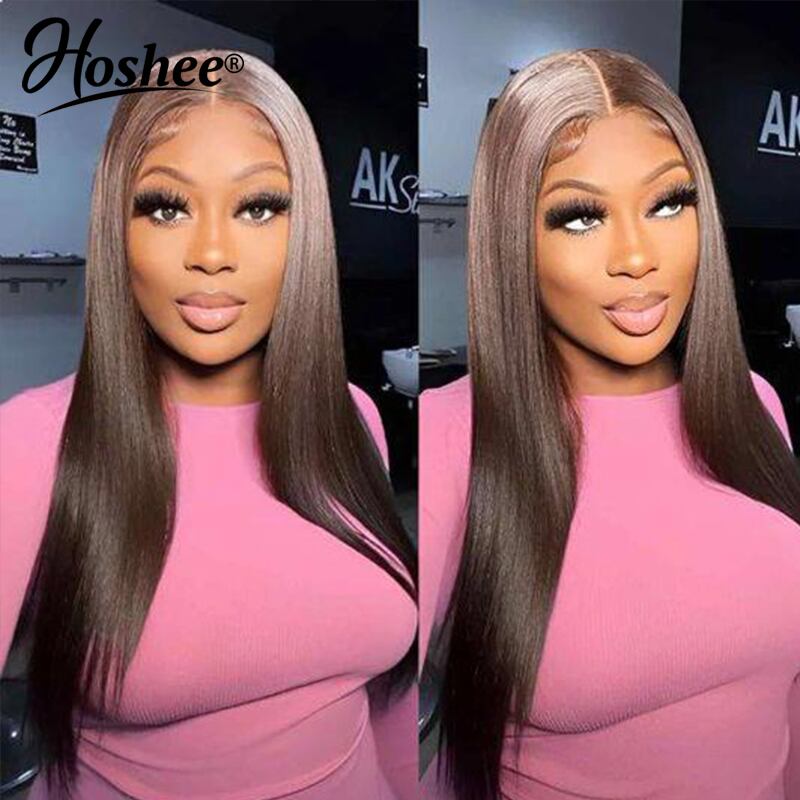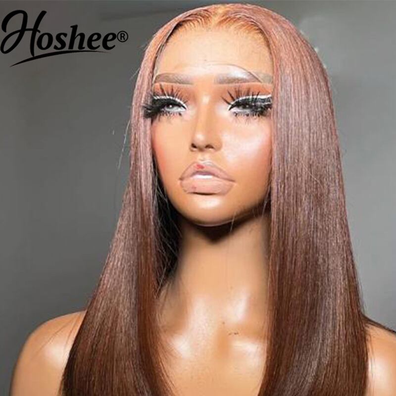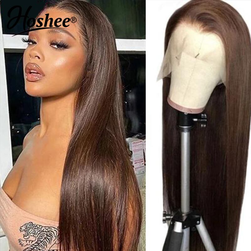 ブラジリアンレミーナチュラルレースフロントウィッグ,滑らかでナチュラルカラー,栗,透明hd,13x4