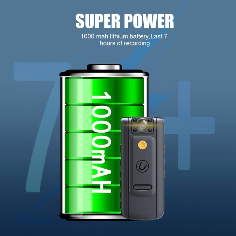 【長い待機時間】1000mahリチウム電池を搭載した小型ボディカメラは、最大7時間の録画を提供します。