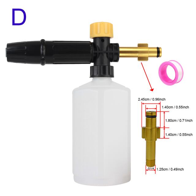 仕様:容量:0.6リットル素材:真ちゅうノズル、ナイロンカバー、hdpeボトル圧力範囲:60bar〜180bar(900psi〜2600psi)調整可能な範囲:0〜60°パッケージが含まれています:洗車ガンノズル1個ボトル1本1x吸引チューブアダプター1個シーリングテープ1枚window.adminAccountId=2675568325;