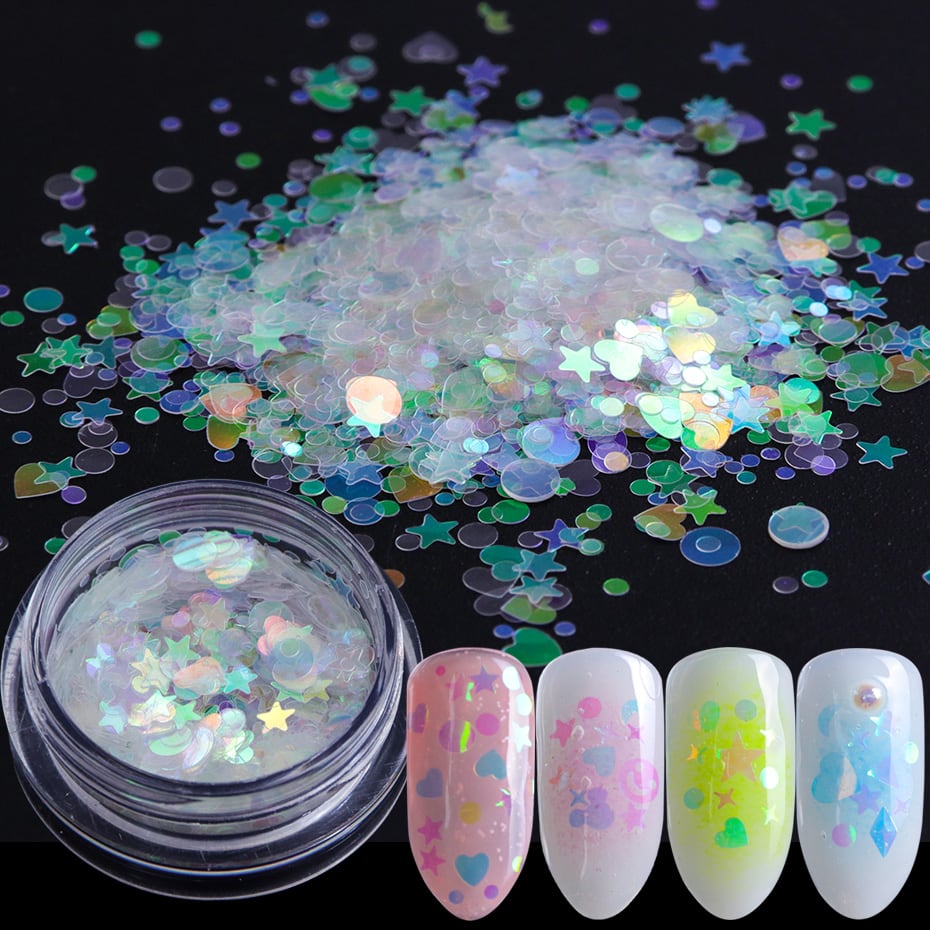 ホログラフィックグリッターabネイルデコレーション,ネイルアートデザイン,マニキュア,マーメイドスパンコール,オーロラ,スター,ハート,TRAB01-