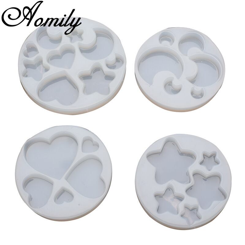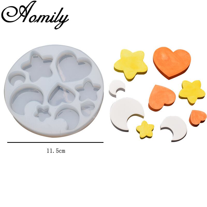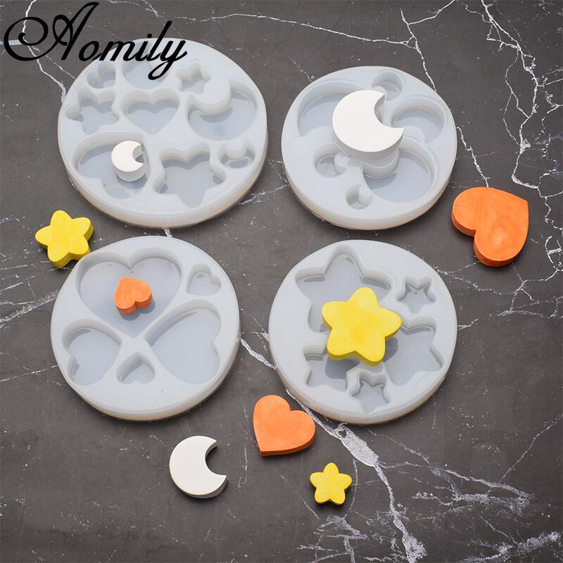 Aomilyマルチスターラブハートムーンシェイプシリコンチョコレートクッキーケーキモールドシリコンソープキャンディダンチョコレートキッチンツール