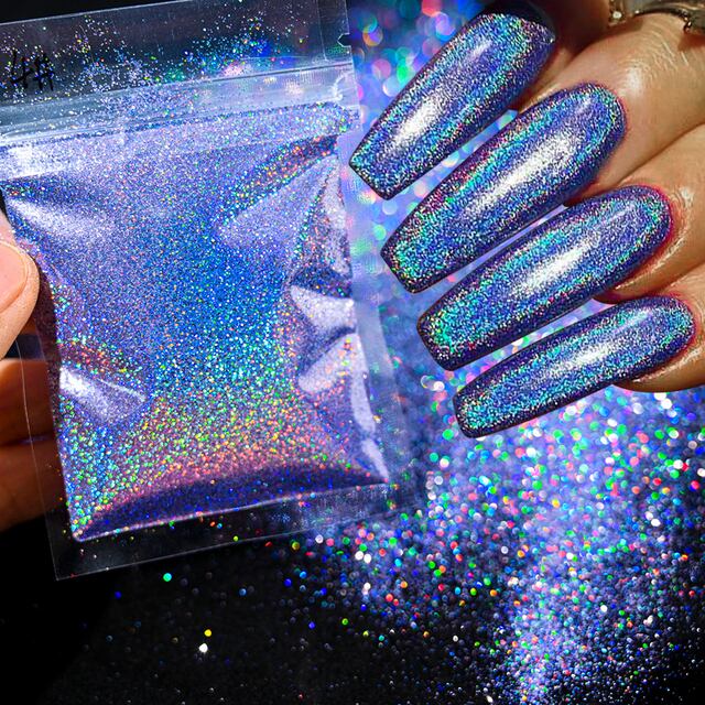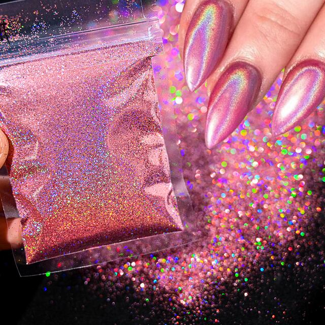 ネイルアート装飾用グリッターパウダー、レインボー、レーザー、メタル、ミラー効果、虹色、ホログラフィックダスト、クローム顔料、 @ hk50、1瓶