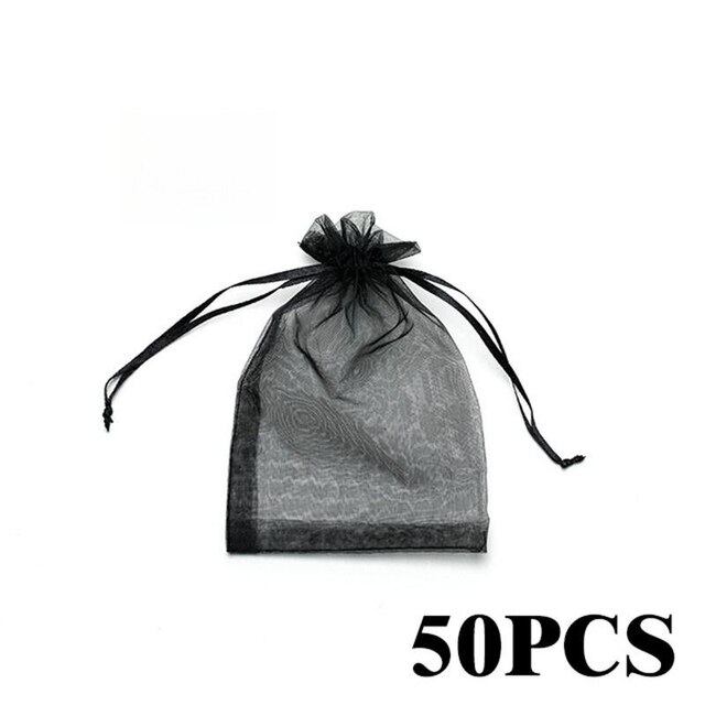 50ピース/ロット多色ジュエリー包装袋7*9 11*16 15 * 20cmオーガンザバッグギフト収納ウェディングドローストリングポーチ卸売