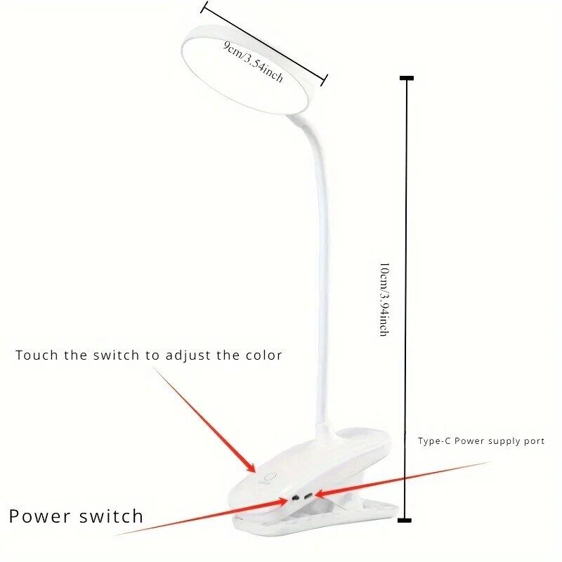 「勉強やリラックスタイムに最適!3色調光LEDデスクランプが登場しました。疲れ目やストレスからあなたの目を守りながら、お部屋を柔らかな輝きで包みます。USB充電式で手軽に使用でき、デスクやベッドサイドでの使用に最適な設計です。明るさや色調も自由自在に調整可能で、ムードやタスクに合わせて照明をカスタマイズできます。ワイヤレスクリップ付きで360度角度調整も可能なので、さらに使いやすさがアップ!一つあれば便利なLEDデスクランプ、ぜひお試しください!」•3色調光:3つの異なる色と調光オプションでランプの明るさを好みに合わせて調整します。