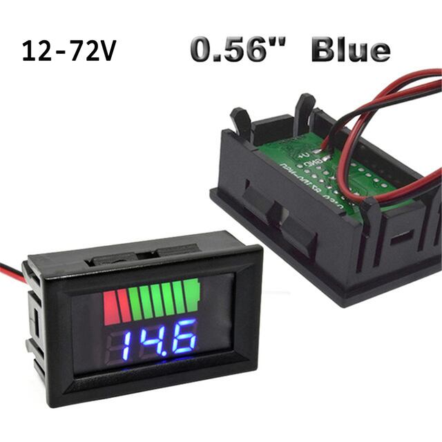 デジタル電圧計,0.56インチ,赤と青のlcd,12v,60v,72v,バッテリー容量インジケーター,鉛蓄電池,車とオートバイの電圧テスター
