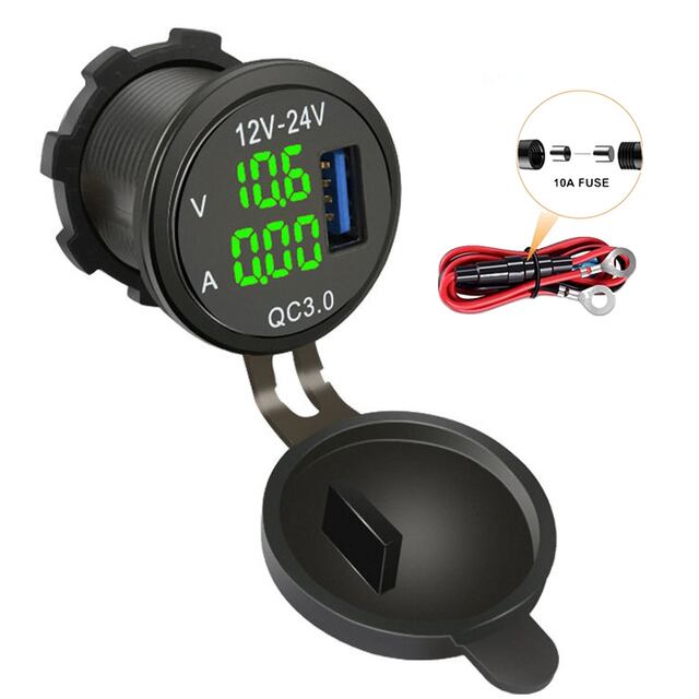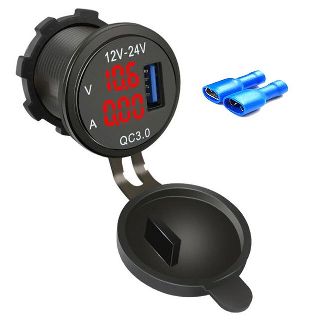 車の電圧計,USB充電器,電源コンセント,デジタル電圧計,車,atv,rv,オートバイ,qc3.0用のモニター
