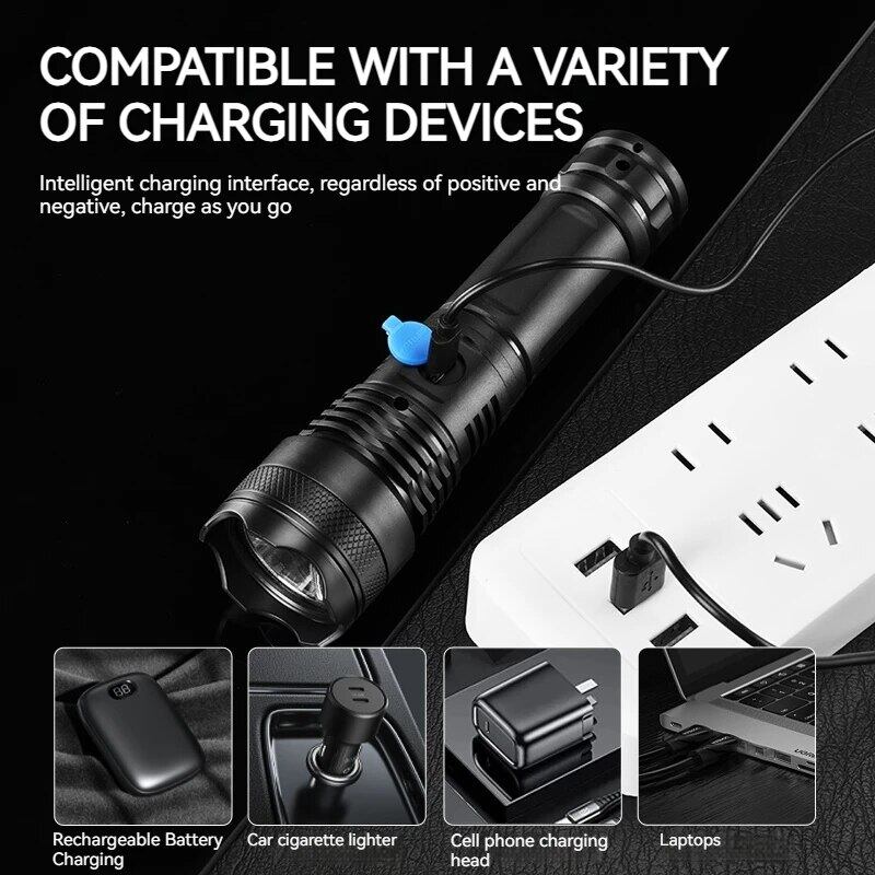 ハイパワーLED懐中電灯,充電式,キャンプトーチ,abs素材,冒険,キャンプ,アウトドアなどの3つの照明モード。