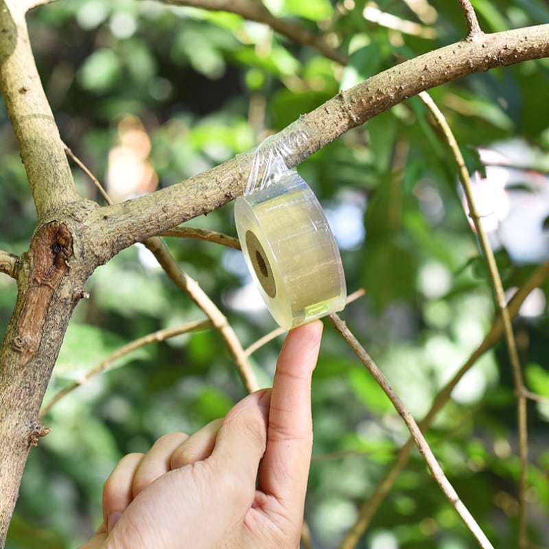 居間の透明なフィルム,粘着性のプラスチックフィルム,フィルムの木,巻き戻しテープ,庭の植栽ツール