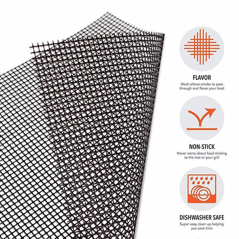 「焦げつきを防止し、煙と風味を堪能する新しいバーベキューグリルマットをお試しください!肉、魚、野菜、エビ、卵など、さまざまな食材を美味しく調理できます。石鹸と水で簡単にお手入れでき、何年も再利用可能なので、経済的かつエコなお買い物です。FDAにより安全性が認められ、耐熱性も抜群!お好みのバーベキューグリルで使用可能で、使いやすいサイズにカットしてご利用いただけます。お手頃価格で、バーベキューをさらに楽しいものにする必需品です。」バーベキューグリル用の焦げ付き防止メッシュマット,調理用テフロンシート,魚や野菜の喫煙者用,バーベキュー用品機能:グリルマットを使用して、肉、ステーキ、ベーコン、卵などをグリルできます。
