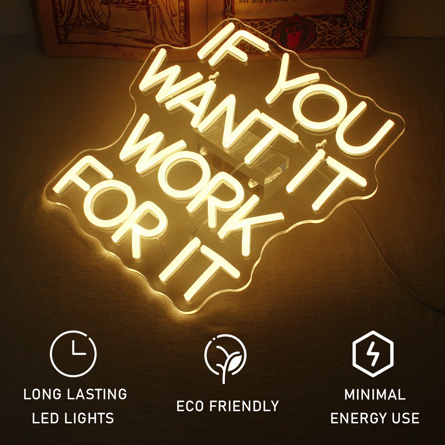 ウォームホワイトの壁の装飾、オフィスのLED記号、アパートや書斎の装飾、作業用