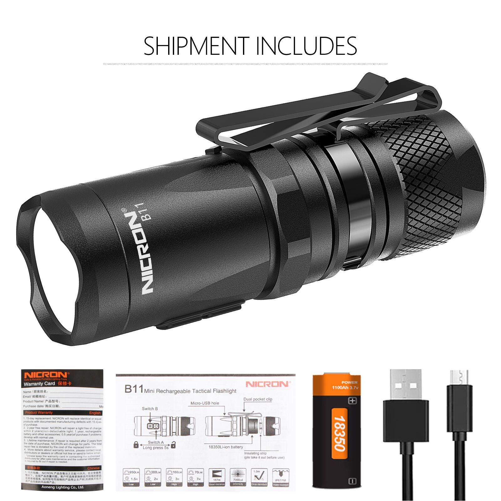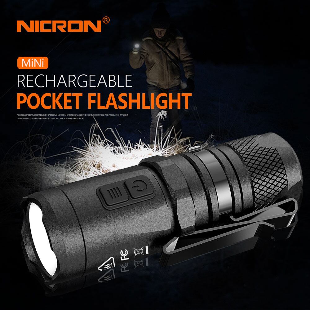 Nicron-b11ミニled懐中電灯,超高輝度,950ルーメン,usb経由で充電可能,ip67防水,6モード,家庭用および屋外用トーチなど。