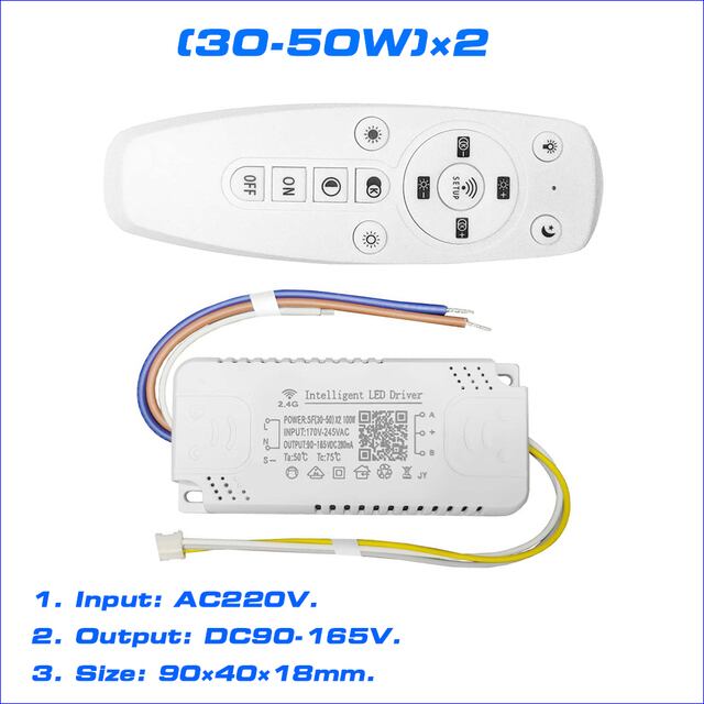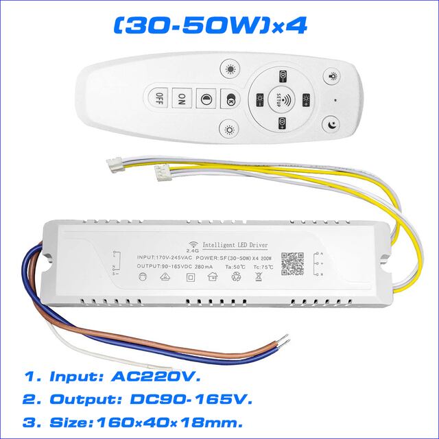 "あなたのお部屋を驚くほど美しく彩るLEDライトドライバーとマルチカラーライトストリップが登場しました。このインテリジェントLEDドライバーは20-40w×2と40-60w×4の機能を持ち、修理部品としてもお使いいただけます。シャンデリアやお好きな場所に取り付けて、2色LEDストリップとバーで素敵なライティングを楽しんでください。さらに、AC170-245Vの広い入力に対応し、便利な2.4gRFとアプリで簡単にコントロールできます。LEDドライバーとリモコンがセットになったパッケージで、すぐにお楽しみいただけます。お買い求めはお早めに!"インテリジェントLEDドライバー(20-40w)x2(40-60w)x42.4g,修理部品,シャンデリアなどの2色LEDストリップとバーで動作します。