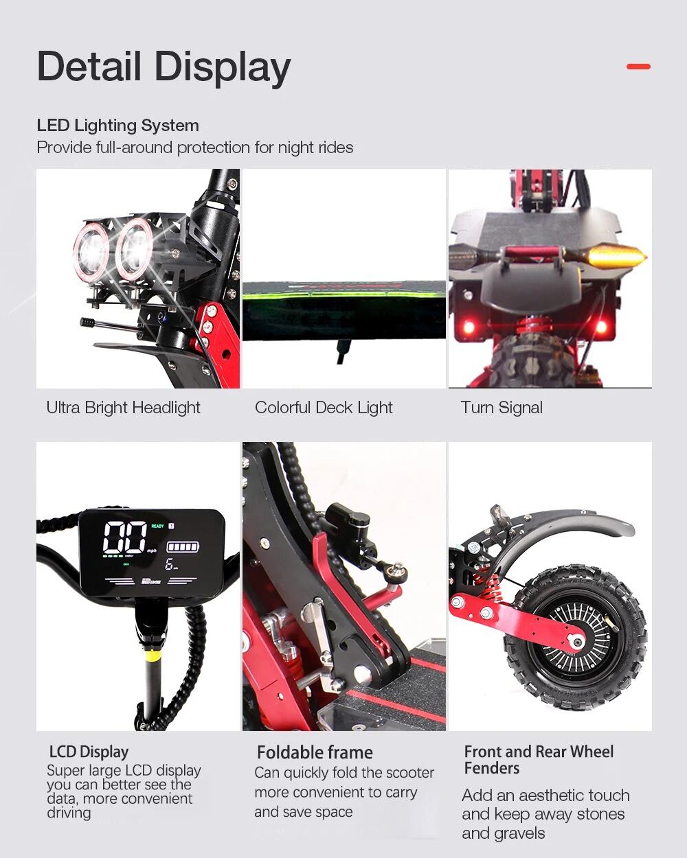 "驚くべきLaflyrs7!穏やかな街中のドライブからアクティブなアドベンチャーまで、どんなシーンにも対応する高品質な電動スクーターです。デュアルサスペンション、油圧ブレーキ、大容量バッテリーを備え、安全性と快適性を追求。洗練されたデザインも魅力的で、パワフルな印象を与える一台です。新たな探検へのパートナーとして、Laflyrs7がお供します。気軽に当店へお問い合わせください。送料無料でお届けします!"当店へようこそご注文後、お問い合わせください送料無料説明プロダクト:laflyrs7保証:3年間保証最高速度:80km/h正味重量:37kg最大運転範囲:60-80kmバッテリー:52v-38Ah情報表示:colorimeterBrake:油圧ブレーキ照明:マスク+ウインカー+テールライトタイヤサイズ:11インチオフロードチューブレスタイヤ最大荷重:250kg耐水性:ipx5出力電力:1900w*2ショックアブソーバー:タイプCスプリングショックアブソーバーセキュリティ機器:キーロック最大充電時間:6~8時間製造プロセス:アルミニウム合金Laflyrs7には、穏やかでパワフルな3つの運転モードがあります。