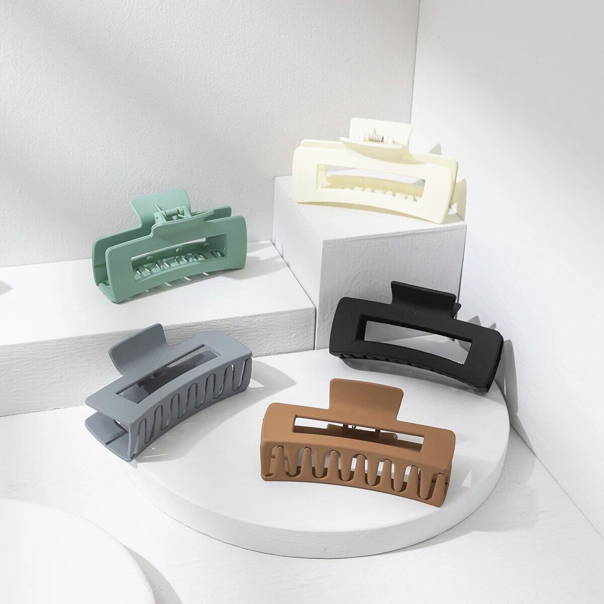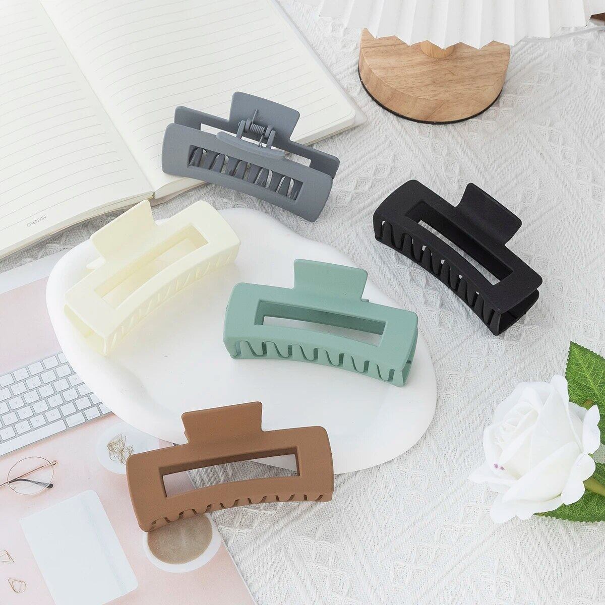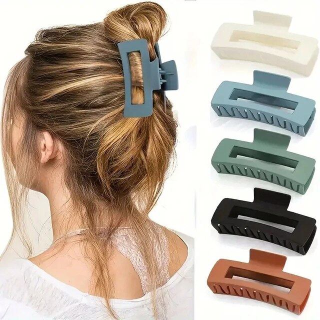 大きなつや消しの長方形のヘアクリップ、バックヘッドクロー、中空ディスク、モーランディカラー、女性、新しい、5個