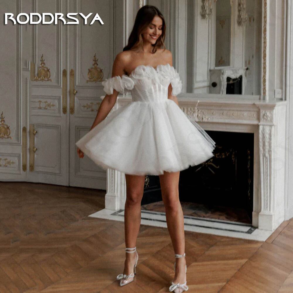 Roddrsya-女性のためのエレガントなウェディングドレス,半袖のチュニック,ラインプリンセス,背中の開いた服 エレガントなショートウェディングドレ