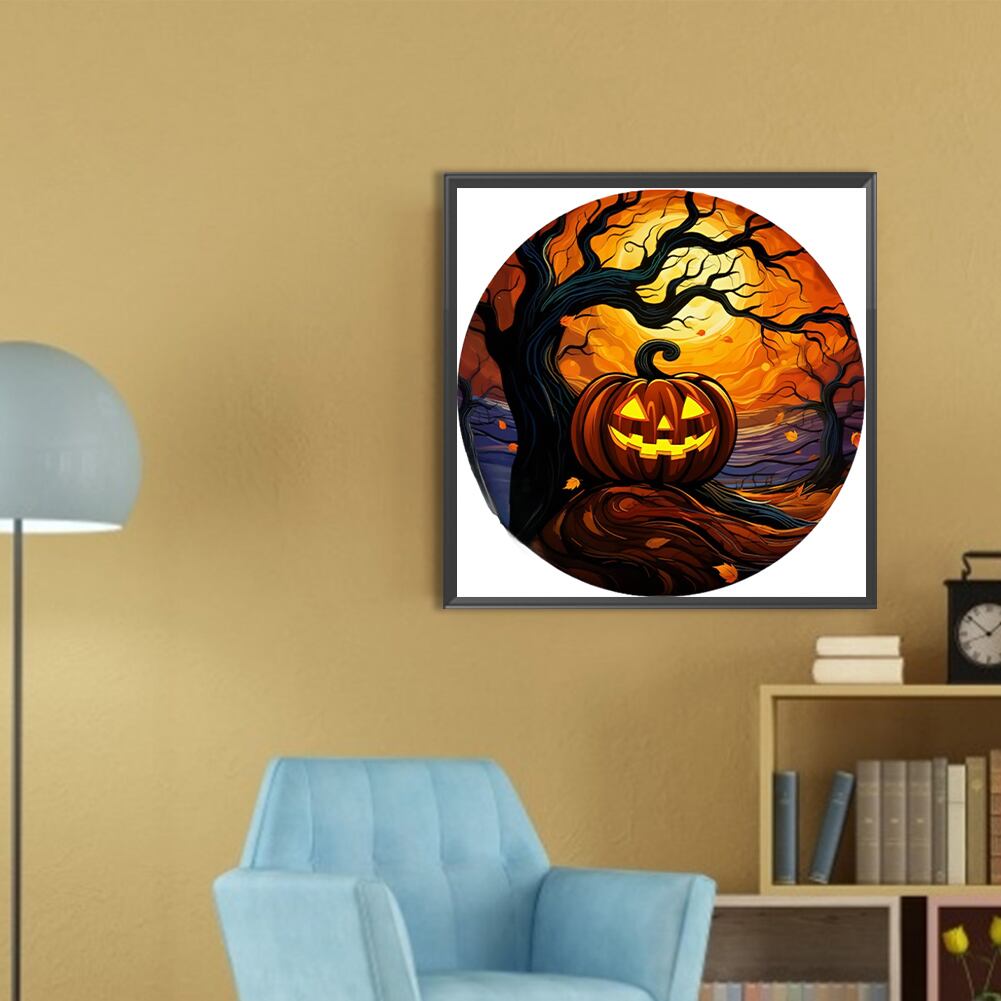 DIY 5d部分的なダイヤモンド絵画、ジャック-ランタンの装飾、フルラウンドドリル、35x35cm