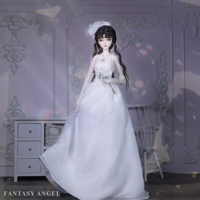 ファンタジーエンジェル-女性のための樹脂製ウェディングドレス,蝶ネクタイ,エレガント,白,1/3 bjd