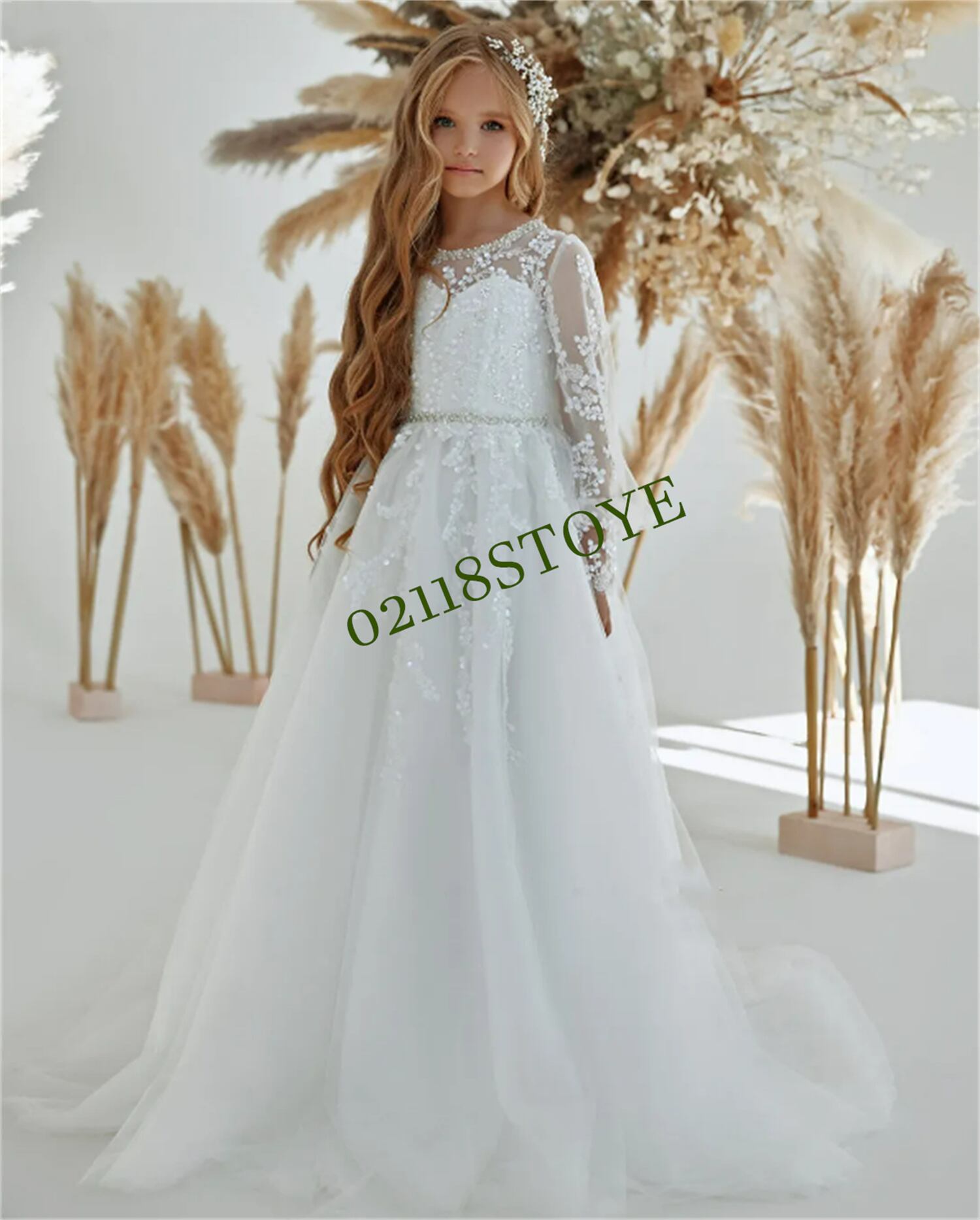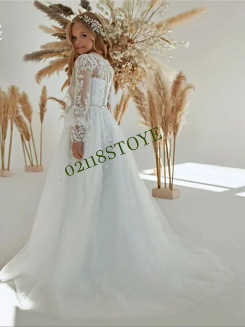 女の子のためのふわふわのチュールドレス,花柄,白,キラキラ,ビーズ,エレガント,子供の最初,お祝い,結婚式