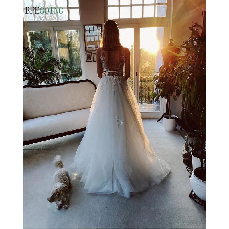 アイボリーのレースのチュールのウェディングドレス,地面の長さ,Vネック,列車,カスタムメイド