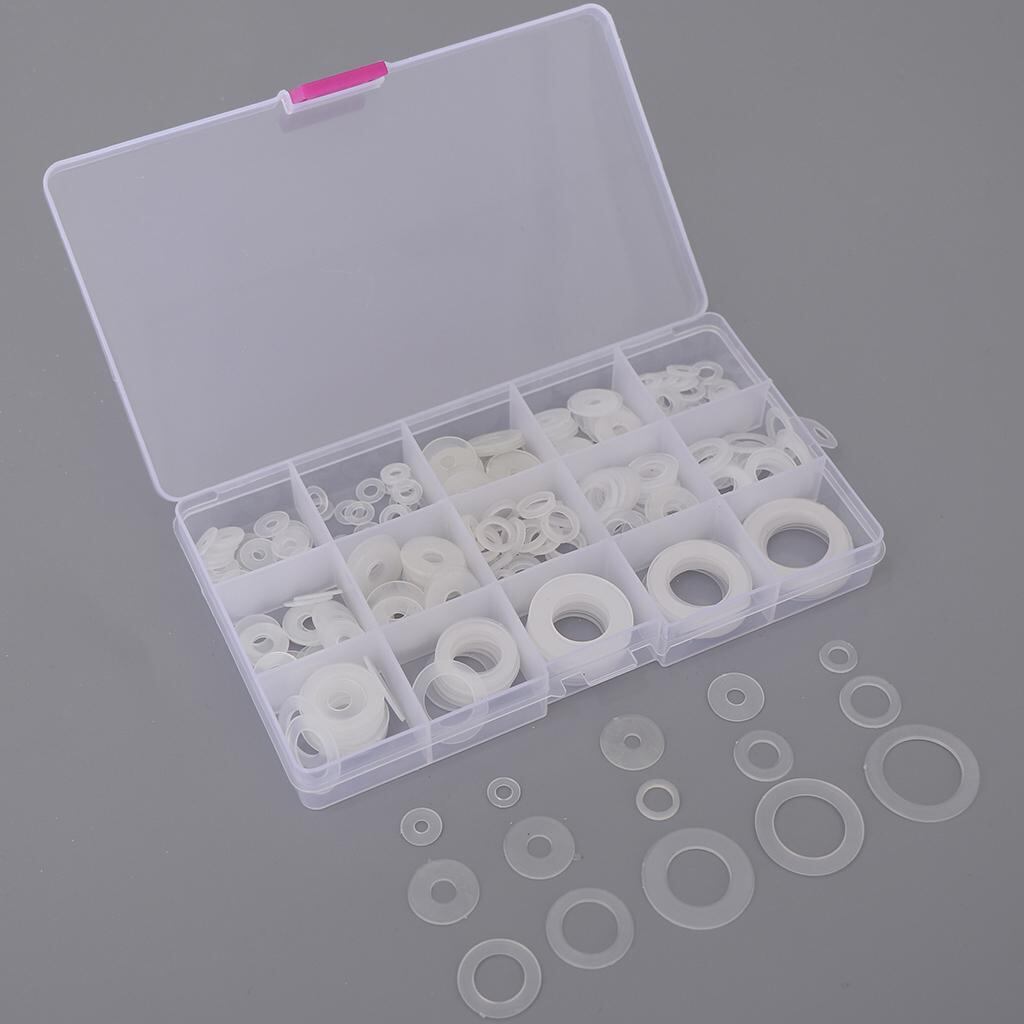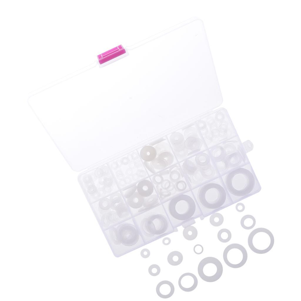 【品質重視】ホワイトナイロン製で、見た目もスッキリとした印象。説明:白いナイロンOリングワッシャー,シールリングの品揃え,15の異なる寸法,250個。