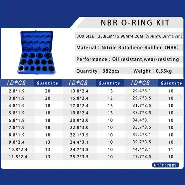 ニトリル-粘着性の品揃えボックス,リングのセット,黒のゴムリング,シーリング,黒,赤,青,黄色,30サイズ