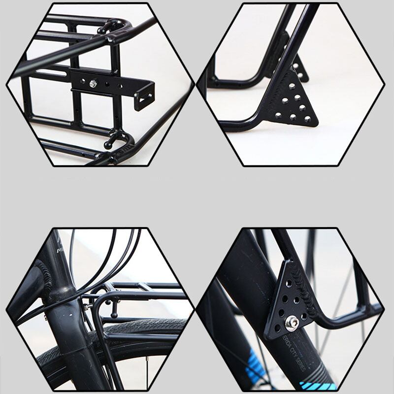 「自転車ライフをもっと快適に。エスケープハードフォークにぴったりのフロントラックが登場しました!ロードトラベルバッグやサイドハンガーを取り付けて、自転車の持ち物をスマートに収納。26, 27.5インチ、700cのロードバイクにもしっかり対応しています。メロンのような快適な走りを実現しませんか?※選べる2つのモデルで、あなたのライフスタイルに合った使い方ができます。」自転車フロントラック,2627.5インチ,700c,ハードフォーク,メロン,ロードバイク,トラベルバッグ,シェルフ,サイドサスペンション用注意:一般的に、取り付け条件は、フロントフォークの側面に固定穴とフロントの上に穴があることです。