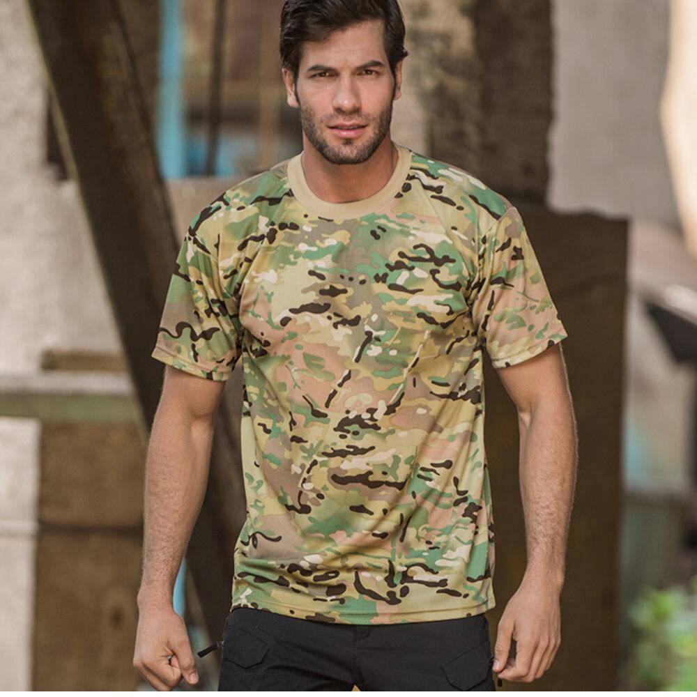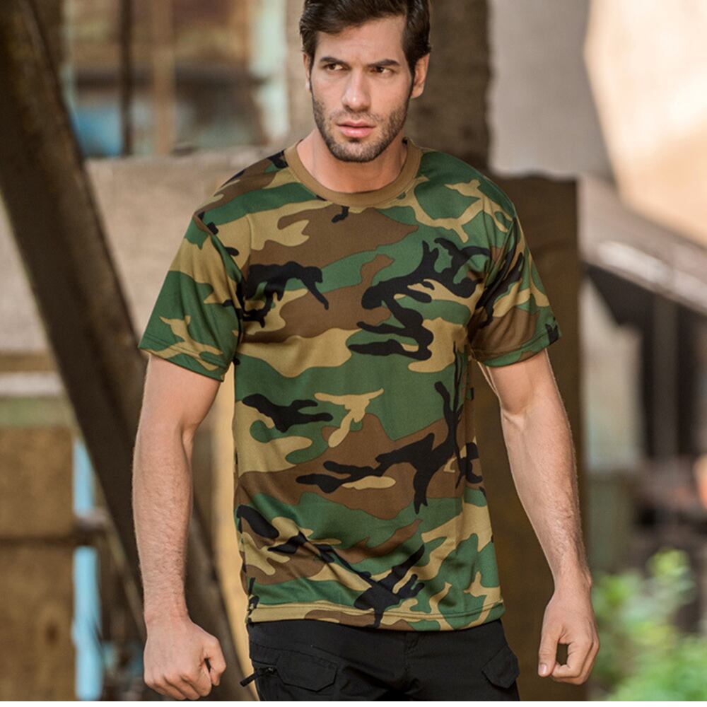 メンズ3Dカモフラージュ半袖Tシャツ、oネック、速乾性、ミリタリー、アーミーカモ、ハイキング、ハンティング、アウトドアスポーツトップス