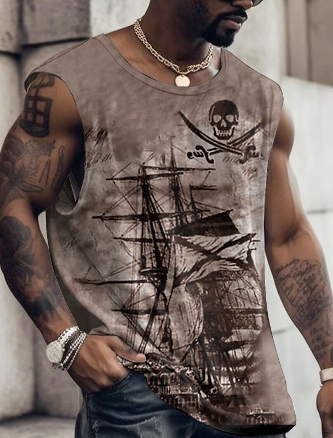 男性用コンパス付きノースリーブトップ,3Dプリント付きタイトトップ,アウトドア,スポーツ,大型タンクトップ,ストリート,ボトム