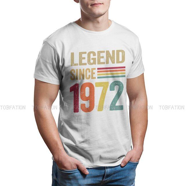 50歳の男性のための凡例Tシャツ,ポリエステルTシャツ,半袖ストリートウェア,ラウンドネック,50周年,モデル1972