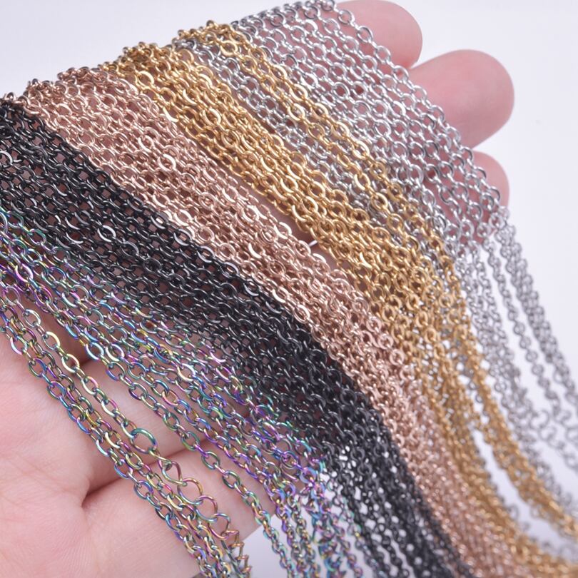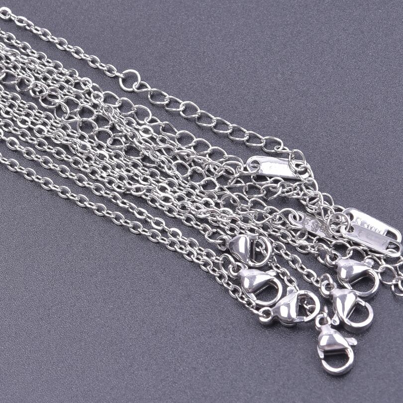 男性と女性のためのステンレス鋼のネックレス,手作りのチェーン,卸売り,1.5mm, 1.6mm, 45cm, 10個
