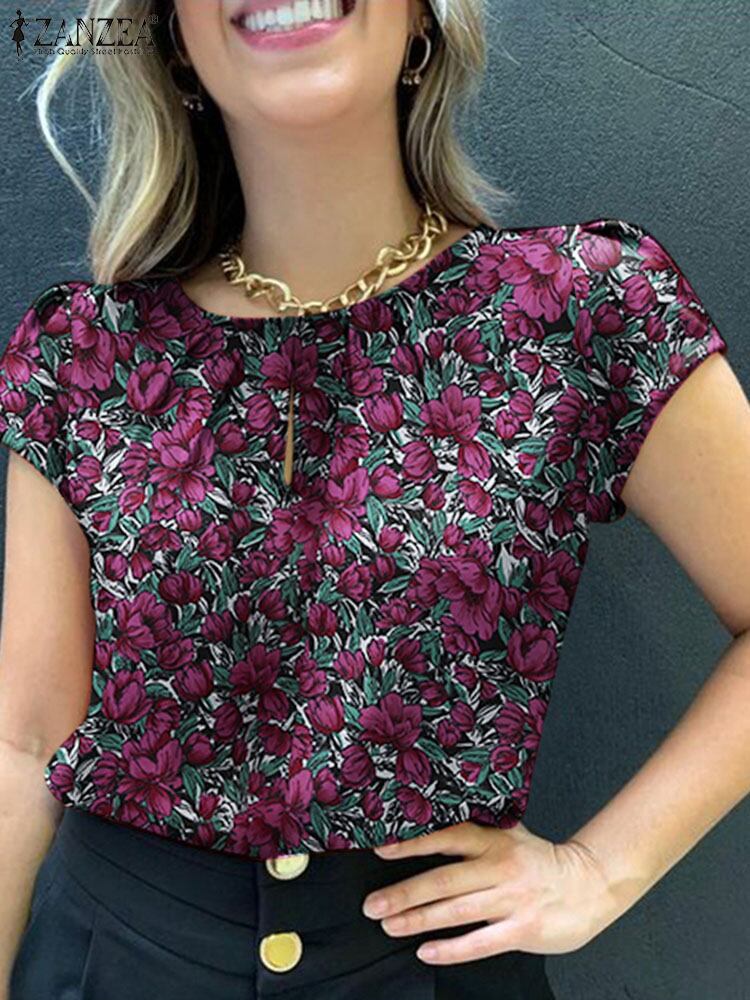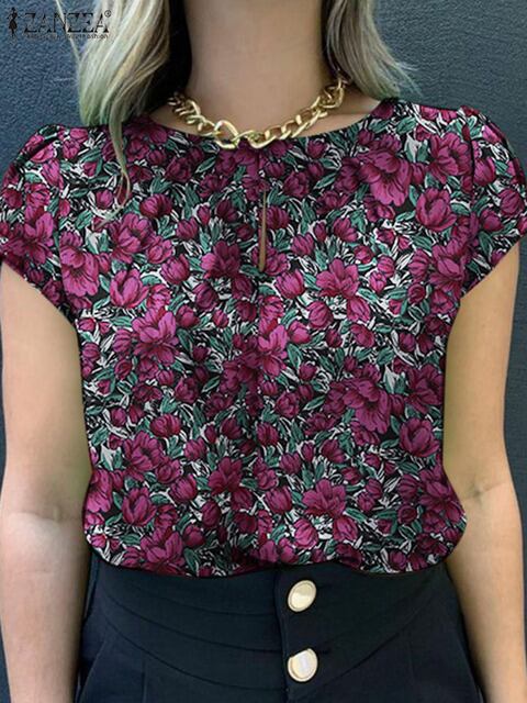 Zanzea-女性のためのレトロなプリントブラウス、スタイリッシュなシャツ、半袖のチュニックトップ、ボヘミアンカジュアル、oネック、ビーチパーティー、
