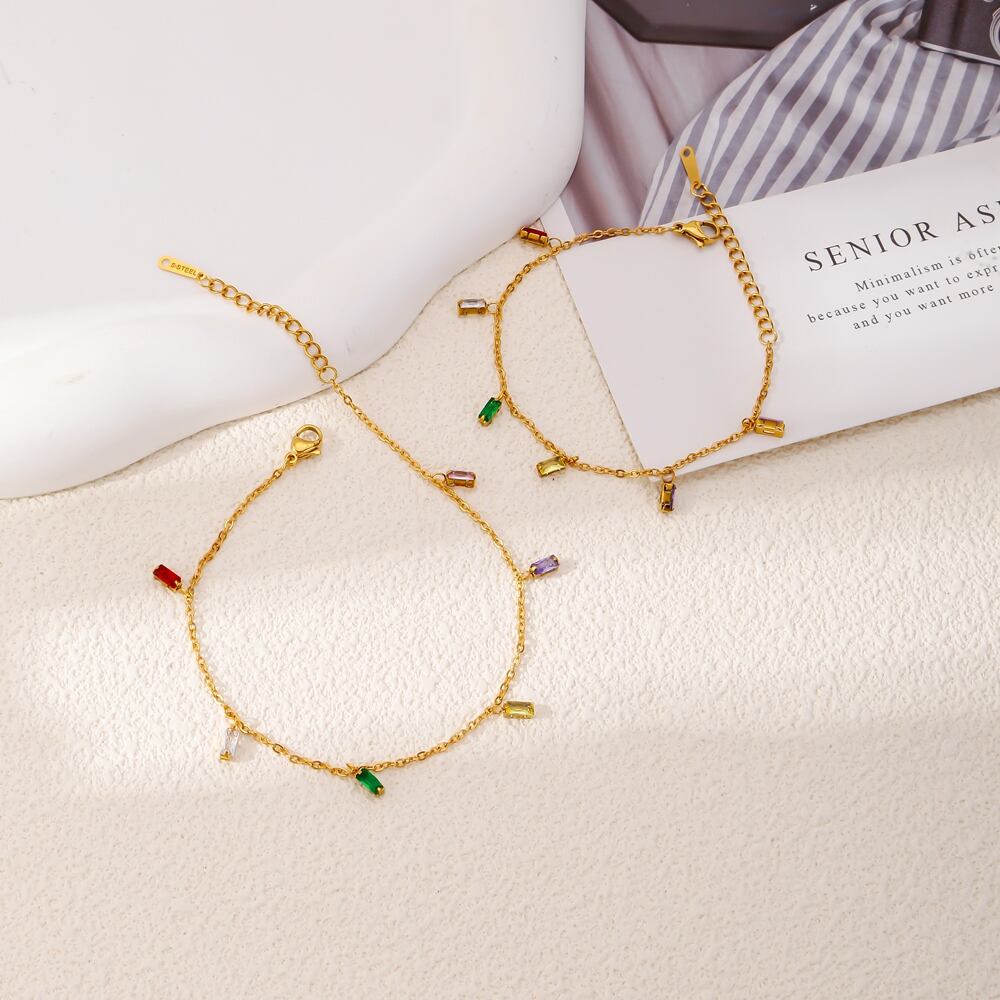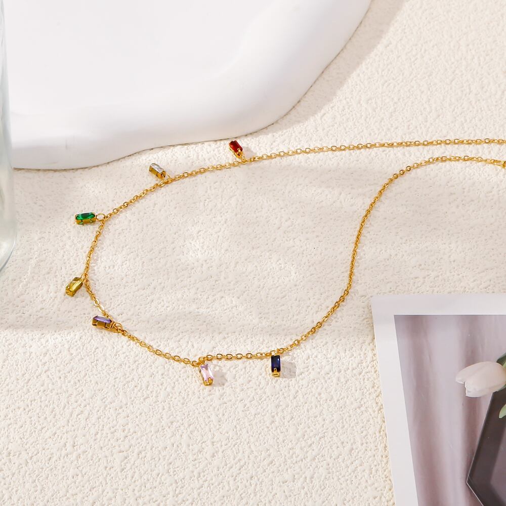 Hiyee-女性用ステンレススチールチェーン,ジルコニアペンダント,ゴールドカラー,カラフルなドロップ,ファッショナブルなジュエリーギフト