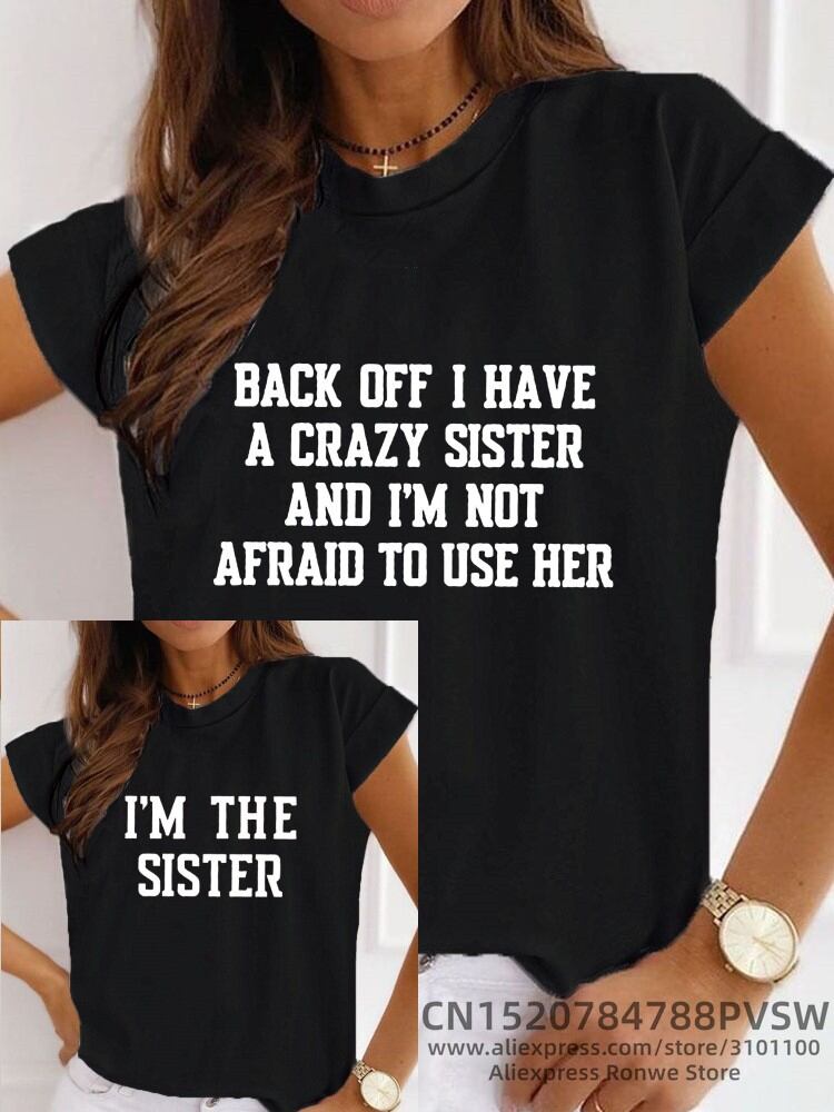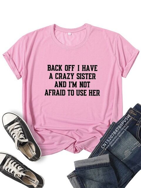 女性のためのクレイジーな姉妹と私は彼女のためにそれを恐れていません面白い毎日のTシャツは姉妹のトップスのTシャツです