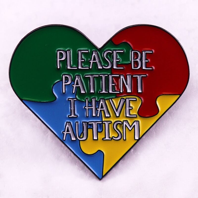 患者が自閉症エナメルピンレインボーパズルハートブローチジュエリーバックパックの装飾