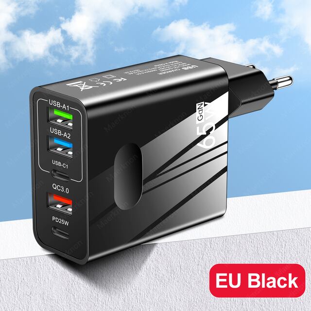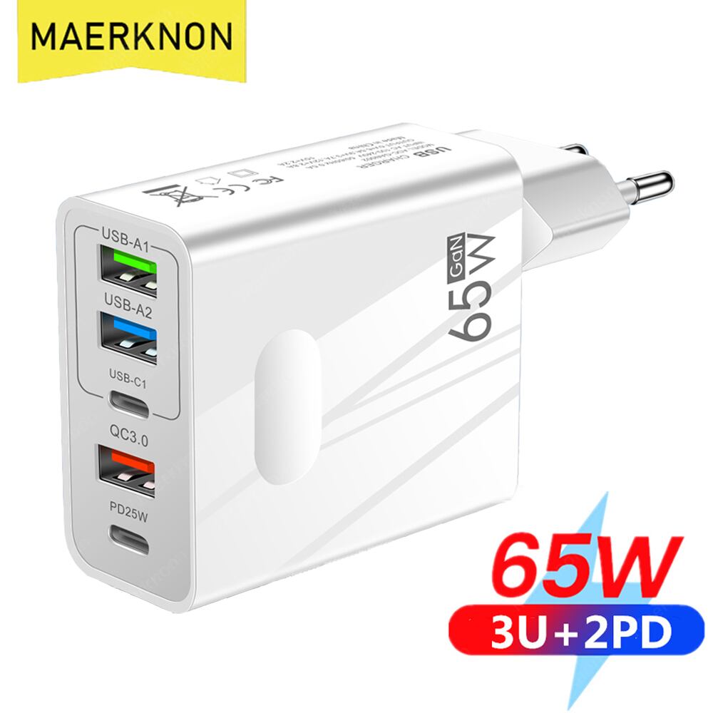 ガン急速充電器電話、5ポート、65ワット、pd、usb、タイプc、電源アダプタiphone 14、13、xiaomi、サムスン、急速充電、壁の充電器