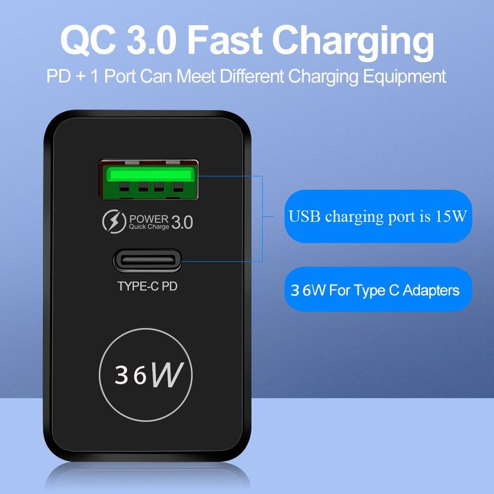 Pd 36w usb充電器急速充電3.0高速電話壁充電器アダプターiphone 13 12プロipad huawei xiaomiサムスン