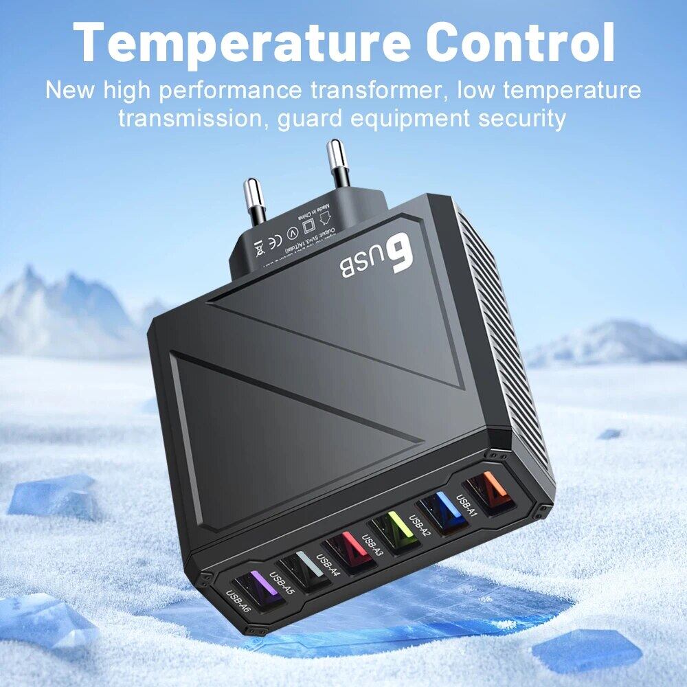 携帯電話の充電器,iPhone, Samsung, Xiaomi, Huawei,3.1a,6ポート用の急速充電USBアダプター