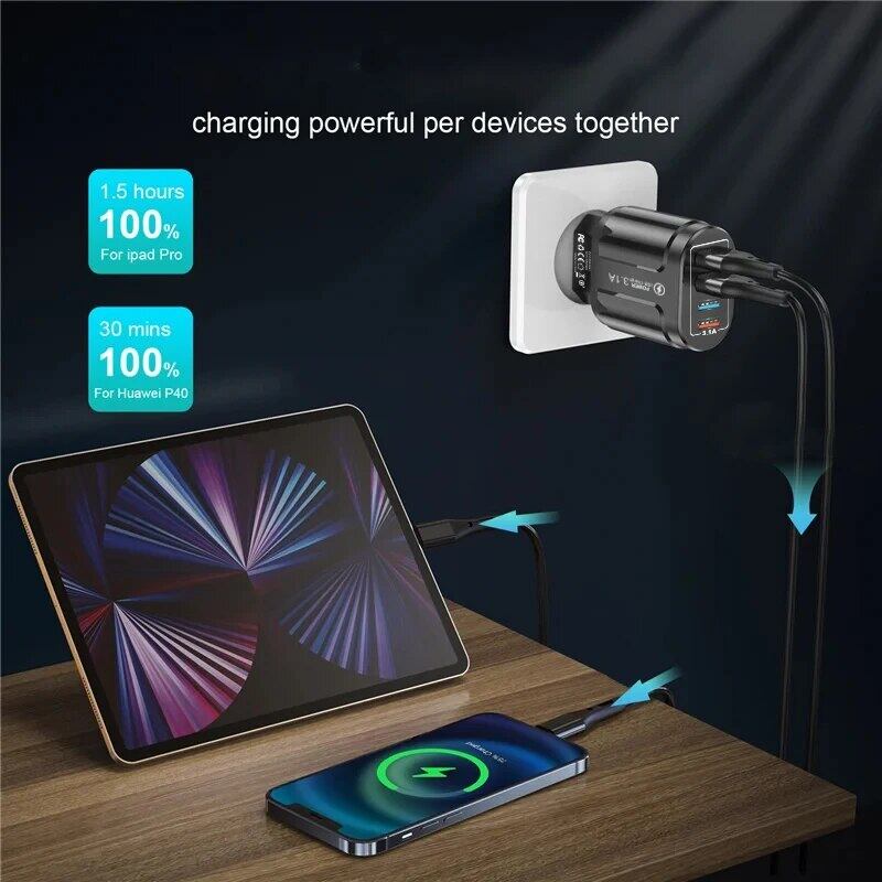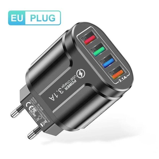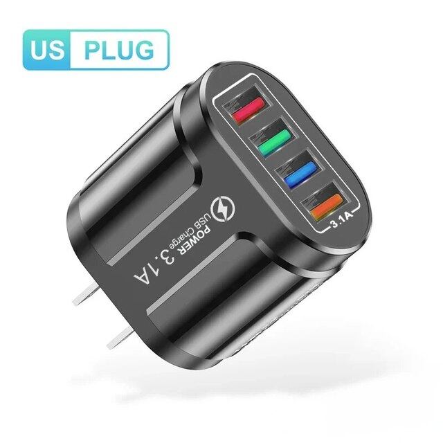 携帯電話用USB急速充電器,充電アダプター4ポート,Samsung, iPhone, Xiaomi, Oppo, Huawei,qc,3.1a