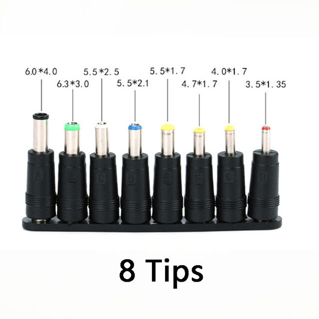 多機能パワーヘッド,8in1サイズ1:3.5*1.352:4.0*1.73:4.8*1.74:5.5*1.75:5.5*2.56:5.5*2.17:6.3*3.08:6.4*4.4(針付き6.0*4.4、6.0*3.0)この電源アダプターは、「5.5mm(外径)x2.5mm(内径)」5.5mm(外径)の共通電源インターフェースに直接挿入できます。
