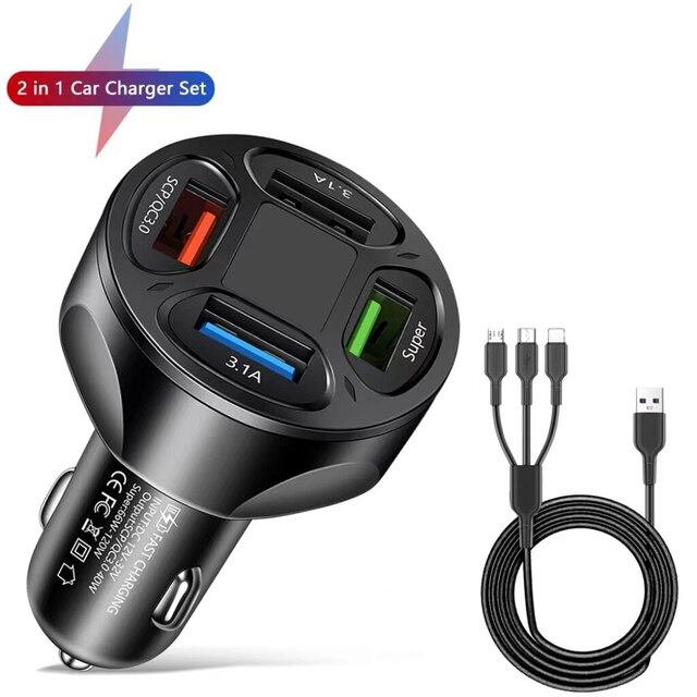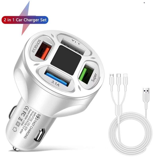 4ポート100wカーチャージャー高速充電qc3.0 usbカーフォン充電器アダプターインカーiphoneサムスンhuawiaomi xiaomi用