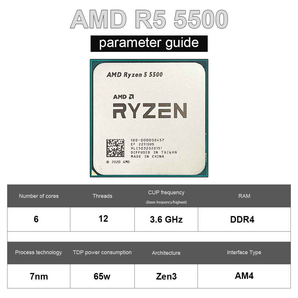 Amd-ryzen 5 5500 cpuプロセッサ,r5 5500コアソケット,am4,65w,デスクトップゲーム,コンピューター,冷却ファン,新品,