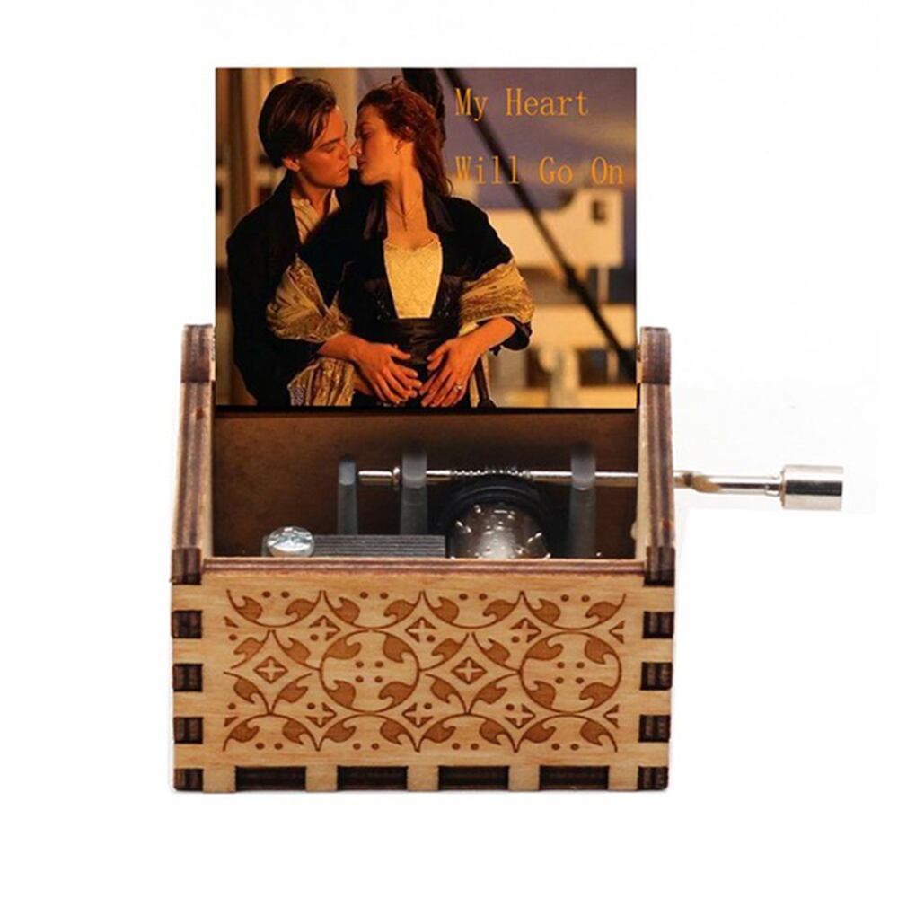 ハート,ハンドクランク,誕生日,記念日,結婚式,バレンタインデーのためのレトロな木製レーザー彫刻オルゴール